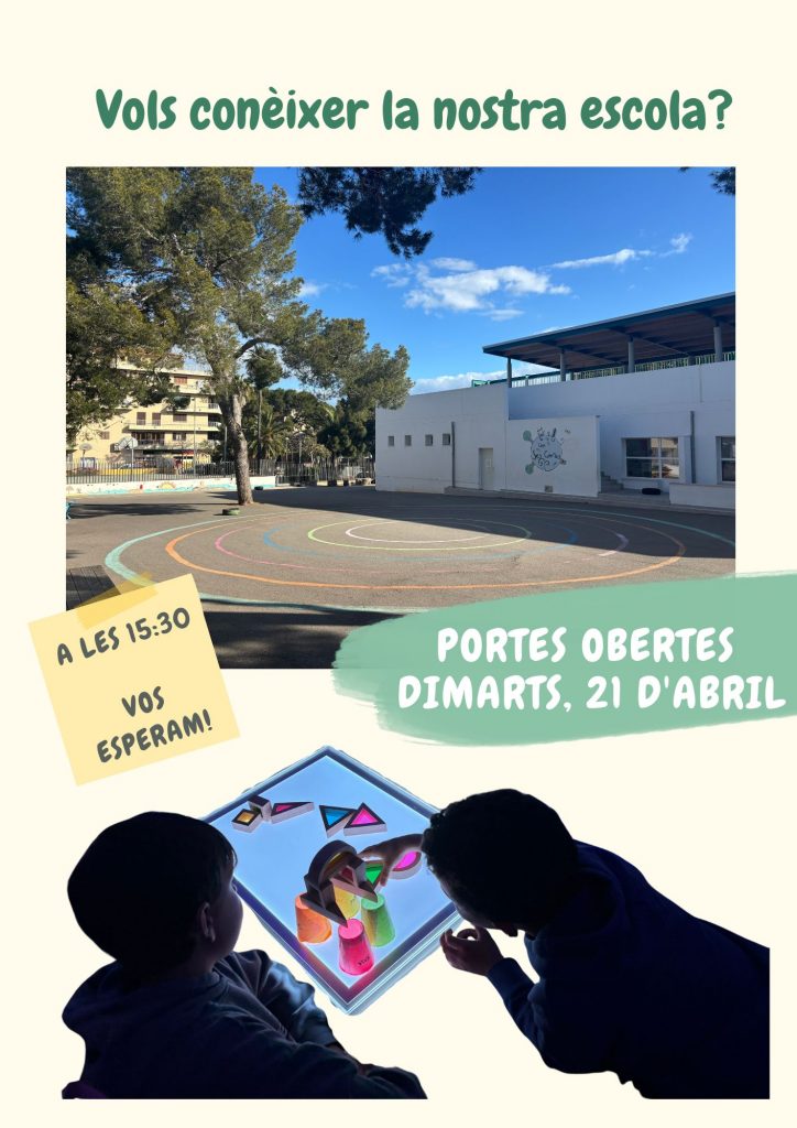 T’animam a venir a la nostra jornada de Portes Obertes! Ens farà molta il·lusió mostrar-vos el nostre projecte educatiu i els espais on els infants creixen i aprenen cada dia.